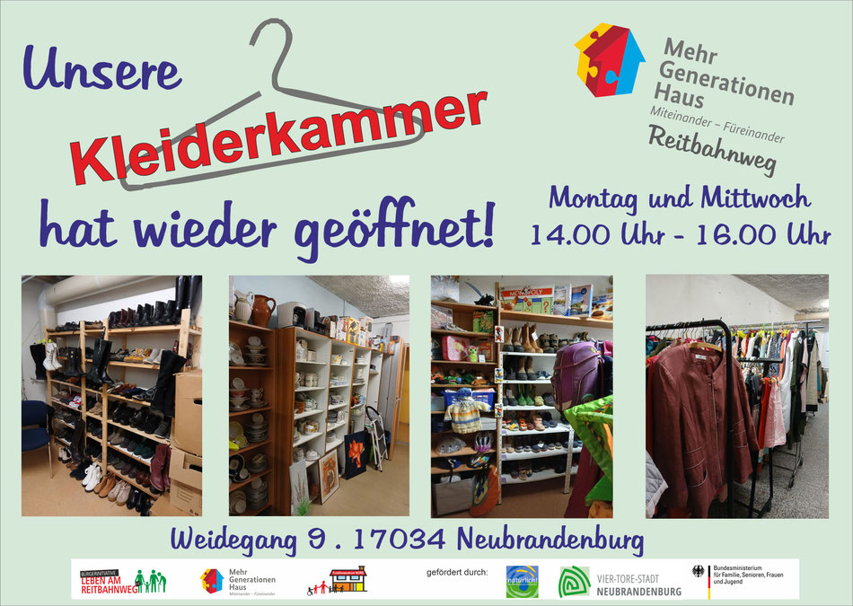 Kleider- und Sachspenden können zu den Öffnungszeiten abgegeben werden.